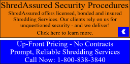 Home | Paper Shredding | Computer Destruction | Other Services | Security Procedures | Security Containers | FAQs | About Us | Contact Us